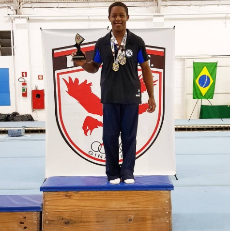 Atleta da Seleção Brasileira de ginástica artística comemora medalhas no Campeonato Estadual