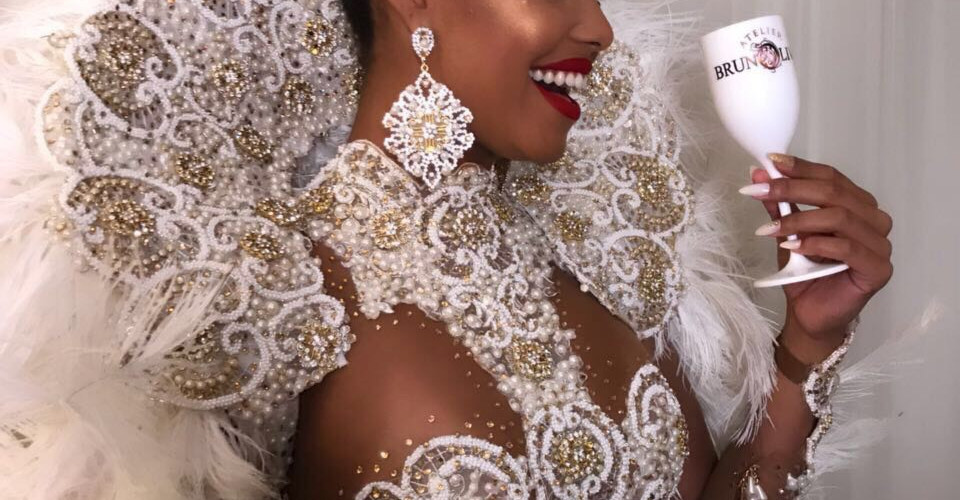 Ela que entrou na avenida as 5:40 com a escola Tom Maior arrancou suspiros por onde passou. A fantasia foi desenvolvida por Bruno Oliveira e era cheia de transparência, com uma capa de penas brancas representando o lado bondoso da Imperatriz Leopoldina. A escola teve o enredo "O Brasil de duas imperatrizes: De Viena para o novo mundo, Carolina Josefa Leopoldina; De Ramos, Imperatriz Leopoldinense".