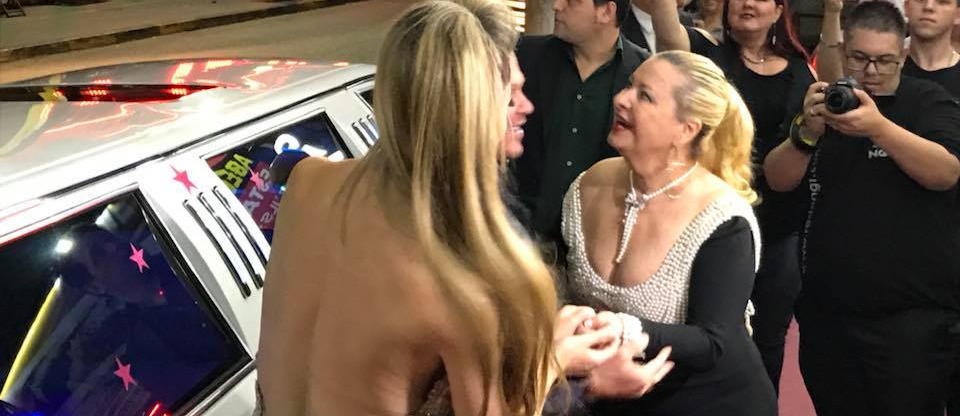 Léo Áquila chega com muito brilho e é iluminada por holofotes, a bela estava radiante para o lançame