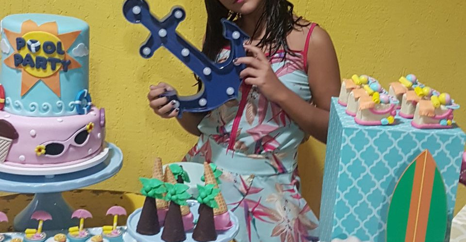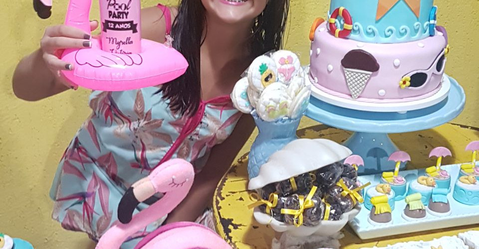 Myrella completou na sexta feira,12 anos com uma “pool party” surpresa, a decoração foi da empresa Chrislu Festas e Eventos.