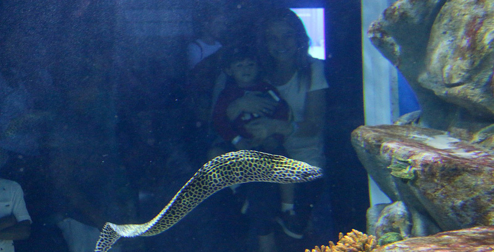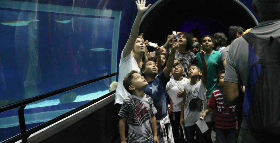 Foi a primeira vez que as crianças desta ONG entram em contato com os mais de 4 mil animais de 380 espécies diferentes, entre eles moreias, peixes-leões, raias, além do Grande Tanque Oceânico, uma das principais atrações do espaço, com 3,5 milhões de litros de água e sete metro de profundidade que desembocam num túnel acrílico onde moram raias, peixes e tubarões, como “Margarida”, “Donald” e “Gastão”, da espécie Mangona (Carcharias taurus), além do casal sensação “Ritinha” e “Zeca”, os tubarões-leopardo (Stegostoma fasciatum).