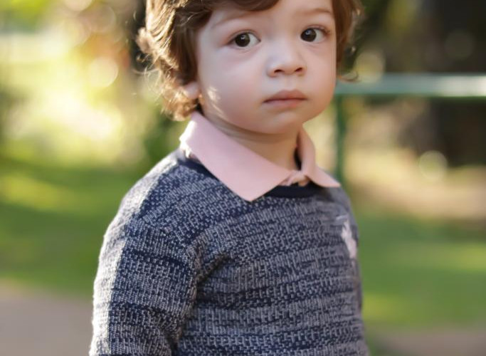 Com 86 cm de altura, loiro, olhos castanhos e cabelos cacheados, manequim 2t e calçando número 22, ele sempre arrasa em seus looks.